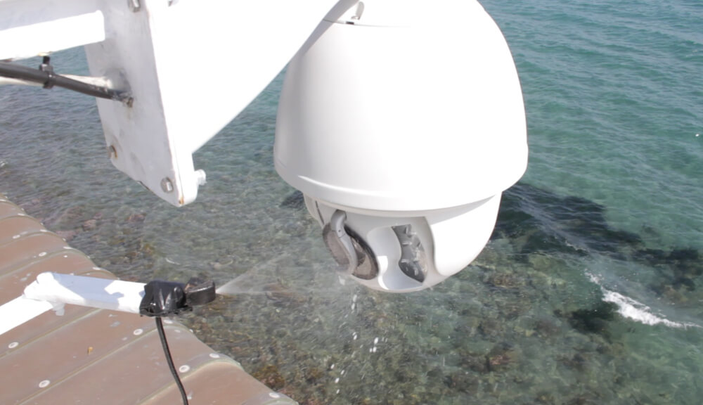 Tuttavia essendo posizionata proprio sopra il mare, questa webcam speed dome per Hotel tende a riempirsi di salino che rovina la qualità dei video. Il problema è stato risolto grazie all'implementazione del sistema automatico di pulizia della webcam: una pompetta spruzza il liquido lavavetri direttemente sull'obiettivo della webcam, intanto il tergicristallo della webcam speed dome elimina le impurità dalla superficie dell'obiettivo.